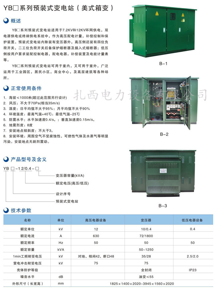 YB1系列预装式变电站(美式箱变)